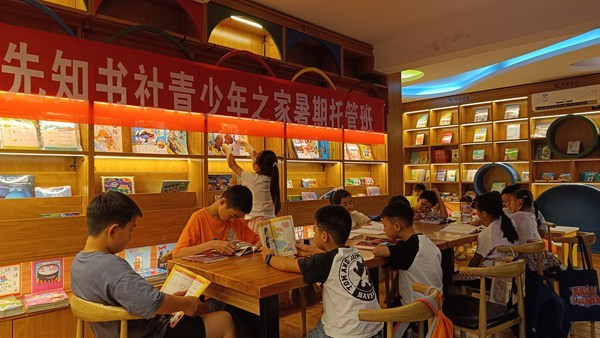 “自主阅读时间结束,请小朋友们把书本朋友送回‘家’。”7月7日,在步行街的先知书社青少年之家托管点,孩子们整理好阅读书籍后,开启了当天的综合活动。在工作人员的带领下,大家先通过“萝卜蹲”活动了身体,随后进行了绘本共读、创意卡片手工等活动。